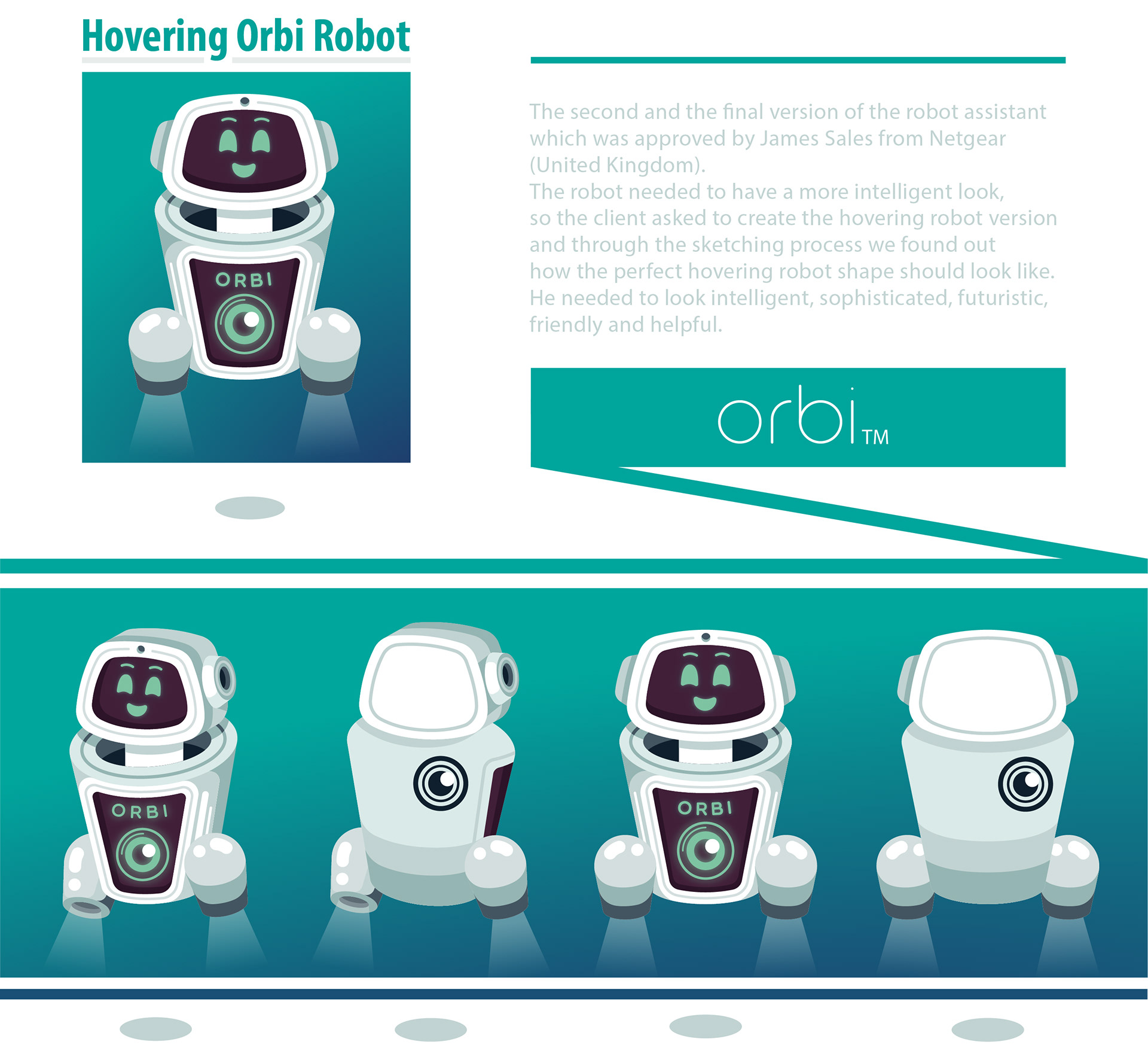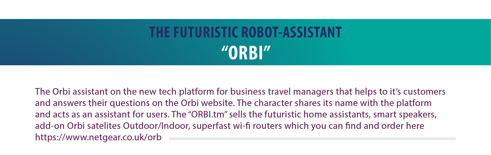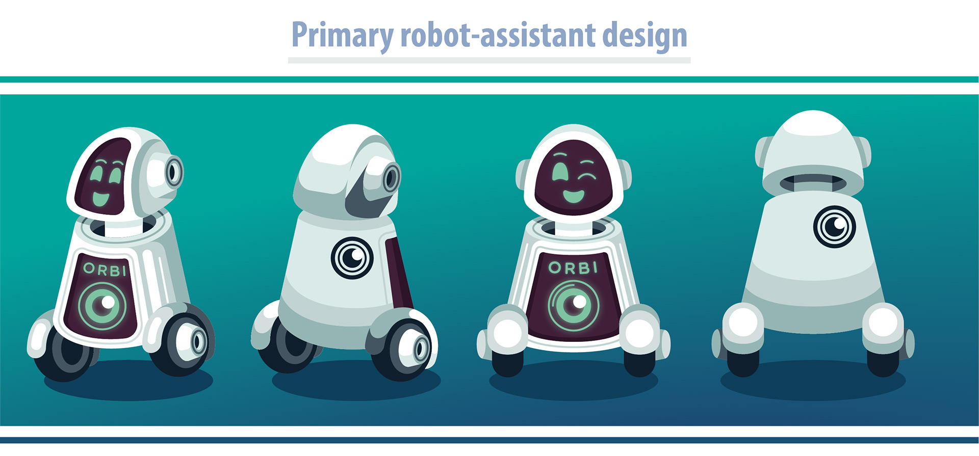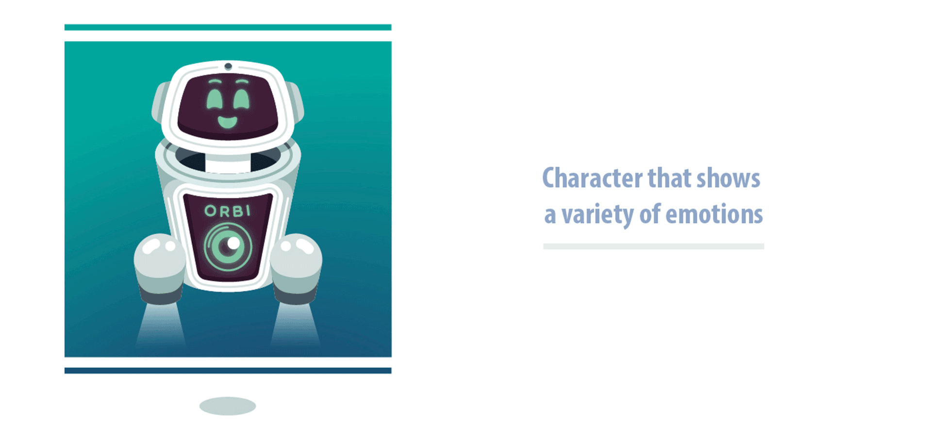 The futuristic robot-assistant name "Orbi" who acts as an assistant for users.