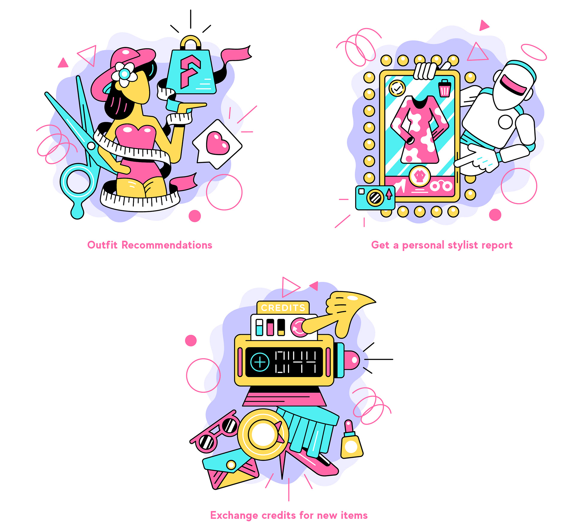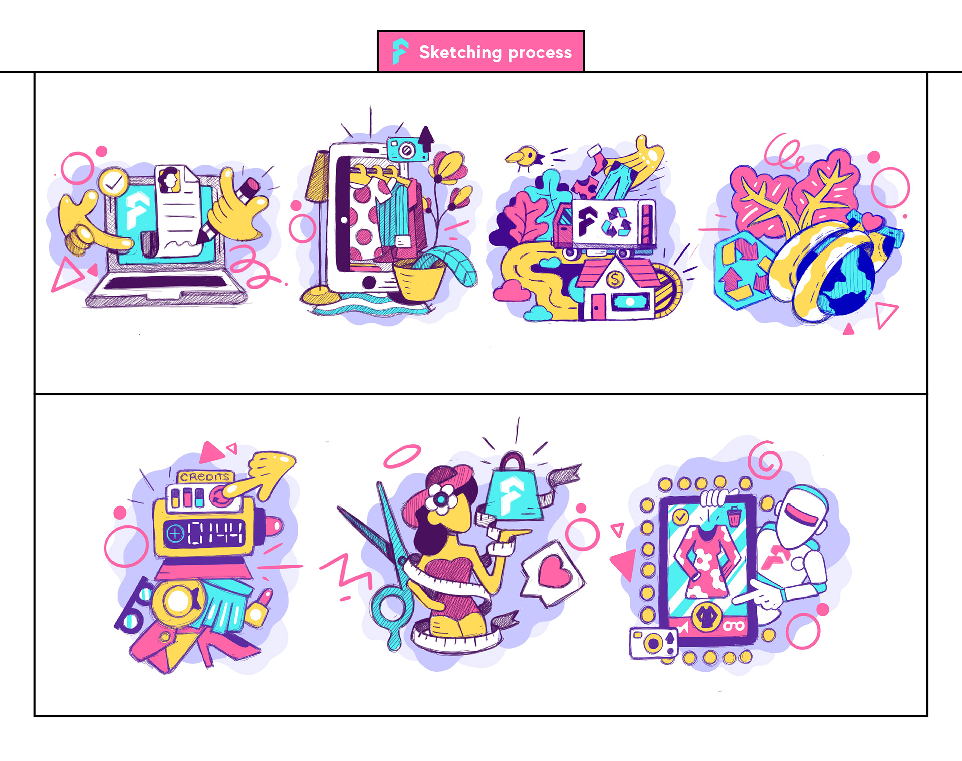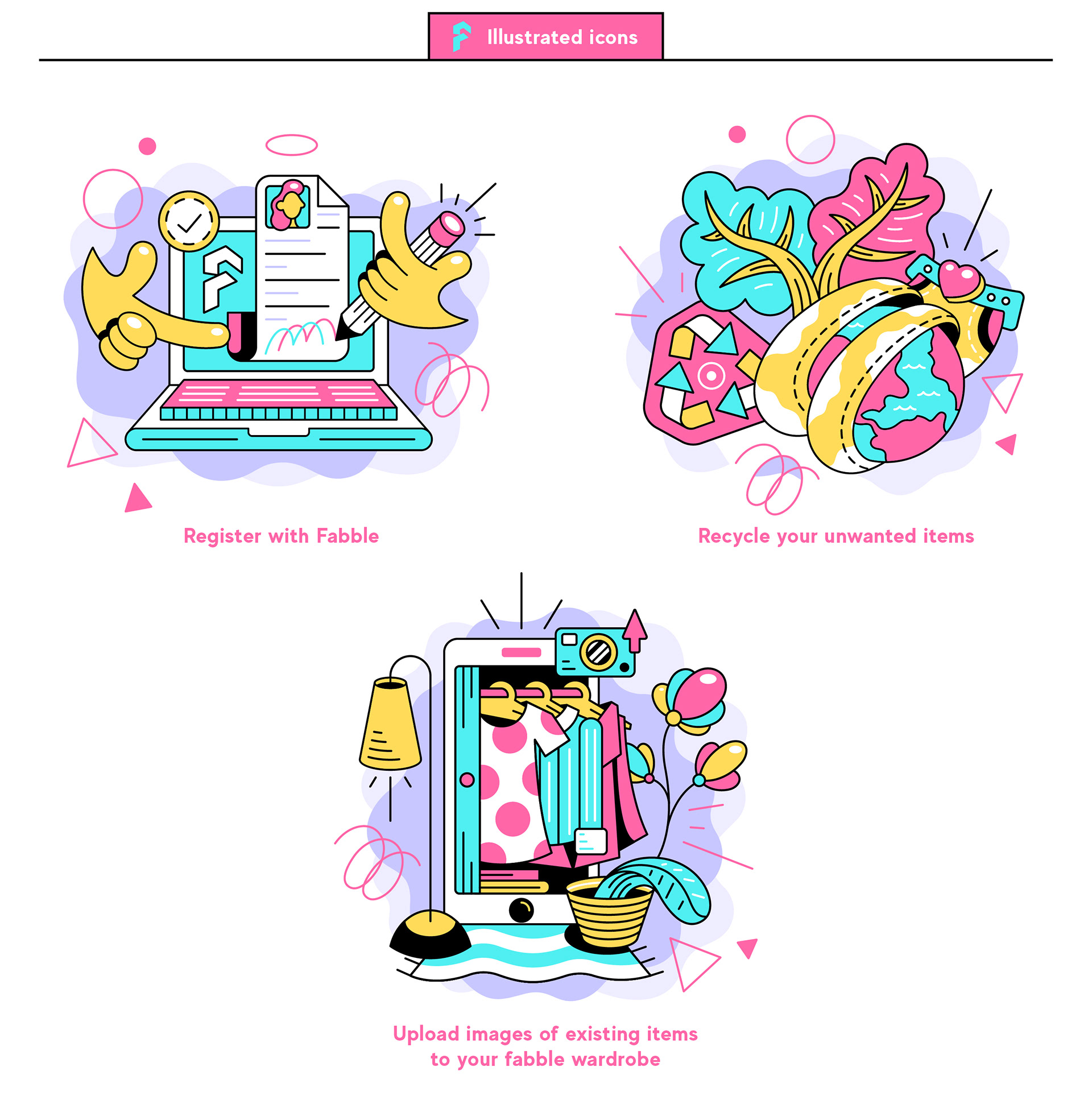 The icon illustration project that visualizes various actions that Fabble website provides to a customers